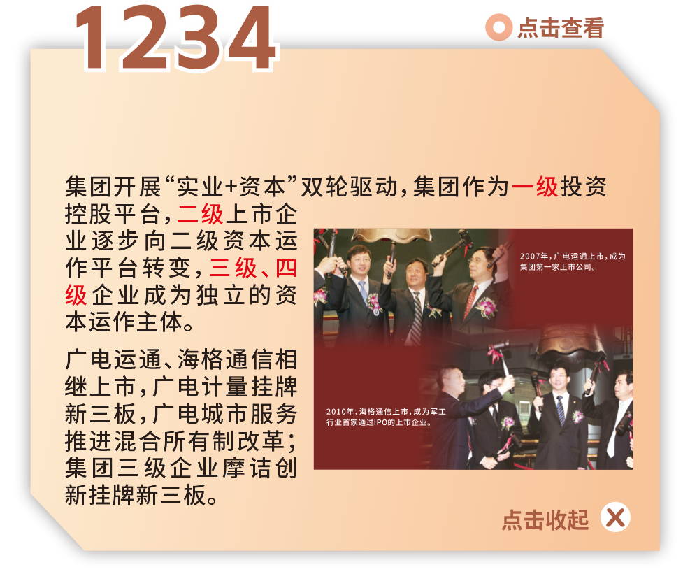 1995Äê2Ô£¬Íê³É¹«Ë¾ÖÆË¢ÐµĹãÖÝÎÞÏߵ缯ÍÅÓÐÏÞ¹«Ë¾Õýʽ½¨É裬½¨ÉèÒÔ²úȨΪŦ´ø£¬ÒԸ߿Ƽ¼Í¨Ñ¶¹¤ÒµÎªÁúÍ·µÄ¸ßÊÖÒÕ¡¢¶àÃÅÀà¡¢¶àÖÖı»®¡¢¶àÖÖ¾­¼ÃÒòËØ²¢´æµÄ»ìÏýÐÍÏÖ´úÆóÒµ¼¯ÍÅ£¬³ÉΪ»ªÄϵØÇøÍ¨Ñ¶¹¤ÒµµÄÁìÍ·ÆóÒµºÍ¾ü¶ÓÏÖ´úͨѶװ±¸µÄÖ÷¸ÉÆóÒµ¡£